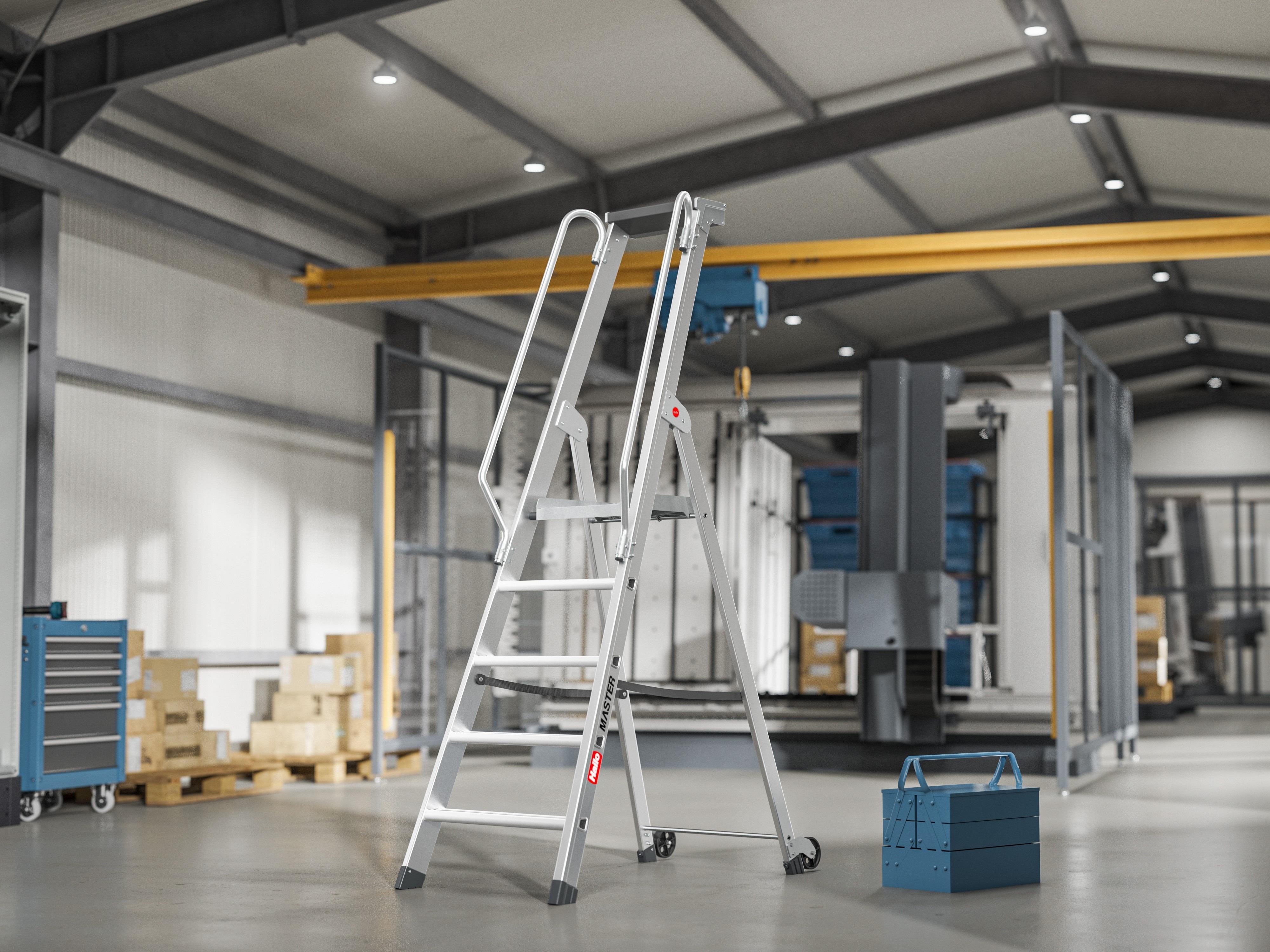 Hliníkové bezpečnostní schůdky s madlem a multifunkční miskou 10000-119